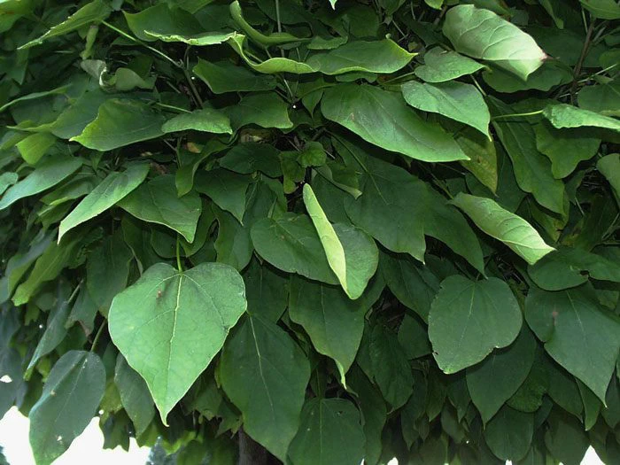 | Blatt: | Große, herzförmige und frischgrüne Blätter, sehr dekorativ. Treibt spät aus. Herbstlaub gelb. |