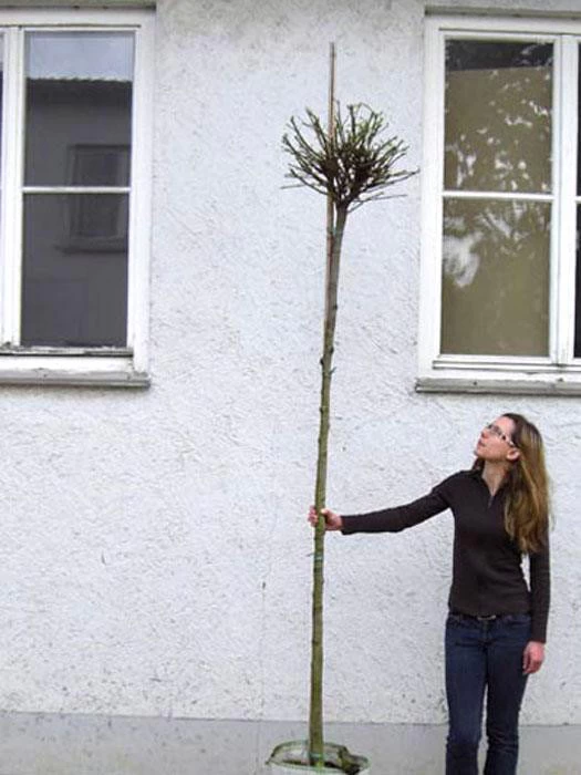 | Lieferqualität: | Junger Hochstamm mit einer Stammhöhe von ca. 2,20 m im Container. Mit einer auf dem Stamm aufsitzenden kleinen Krone, die im Lieferzustand fachgerecht etwas zurück geschnitten ist, um eine gute Kronenentwicklung nach der Verpflanzung zu gewährleisten. Stammhöhe: ca. 2 – 2,20 m |