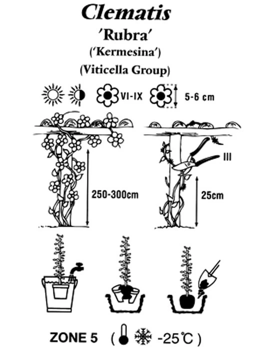 Clematis vit. ‚Rubra‘ die prachtvoll blühende Clematis-Sorte
