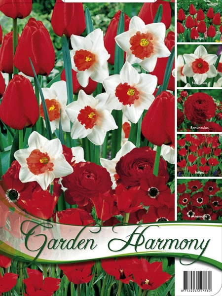 Die Farbkombination besteht aus 5 Sorten verschiedener, frühjharsblühender Blumenzwiebeln, die aufeinander abgestimmt sind.