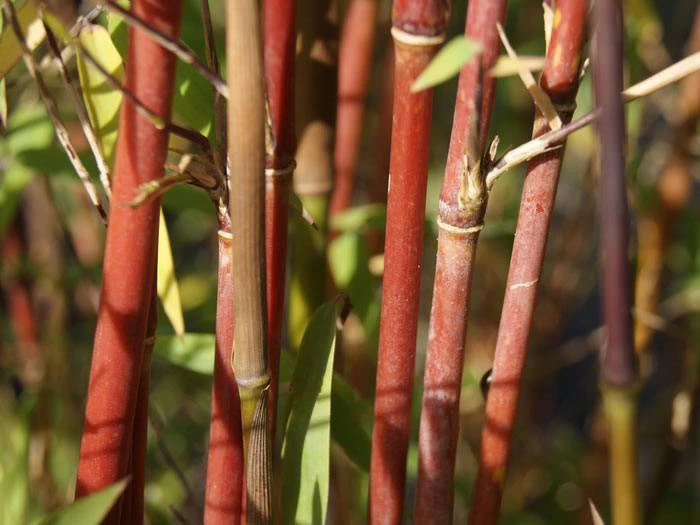 Wuchs: Aus der Basis der Fargesia entspringt eine Vielzahl an zunächst dünnen Halmen. Mit den Jahren werden Sie jedoch miterleben, wie die Triebe immer kräftiger werden. Dennoch verliert die Fargesia jiuzhaigou nie ihre Leichtigkeit. Die grazile Pflanze wird zwischen 3 und 4 Metern hoch und im Einzelstand etwa 2 Meter breit. Durch ihren dichten Wuchs kann sie Ihnen als Sichtschutz dienen und sogar als Hecke gepflanzt werden. Eine Besonderheit dieser Art ist auch die Färbung ihrer Halme. Diese variiert je nach Sonneneinstrahlung von grün bis rot. Während die neuen Halme und die selben, die im Schatten stehen überwiegend grün sind, erstrahlen die sonnenverwöhnten Triebe in roter Farbe.