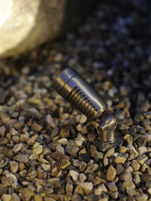 Der Spotstrahler ‚Minus‘ kann mit dem Erdspieß ganz einfach beliebig im Außenbereich postiert werden und sowohl zur sicheren Beleuchtung als auch zur Anstrahlung besonderer Elemente im Garten dienen.