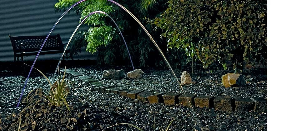 Der laufende Lichteffekt und der Wasserstrahlabschneider sorgen für ein einzigartiges Wassererlebnis. Einzelne Wasser-Licht-Elemente scheinen durch die Luft zu fliegen.