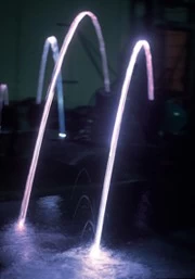 Der klare, punktgenaue Wasserstrahl wird anhand mehrerer wählbarer, fest programmierter Kombinationen aus Licht und Strahlstärke bzw. -Dauer gekonnt in Szene gesetzt. Die Strahlweite und -höhe ist individuell regulierbar.