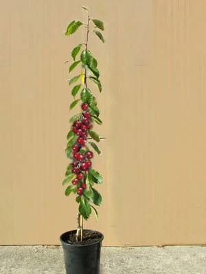 Die Säulenkirsche ‚Sylvia‘ ist nicht selbst befruchtend. In 100 bis 200 m Entfernung sollte möglichst ein anderer Befruchter-Kirschbaum stehen.