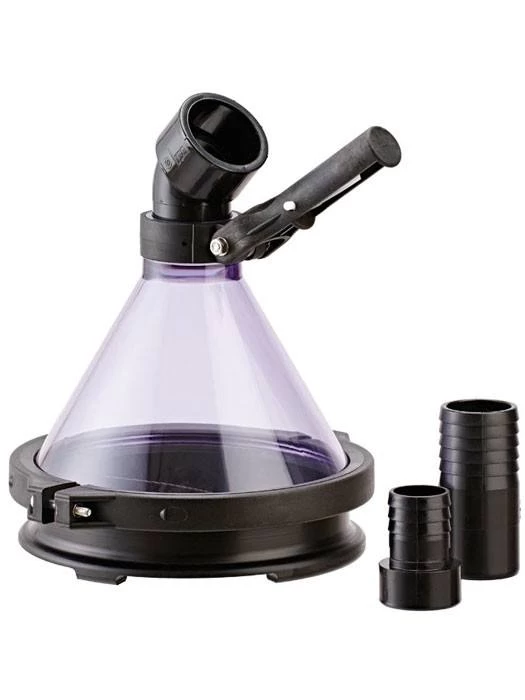 Mulmsauger mit transparenter Polycarbonatglocke und drehbarem 39/50mm Anschluss. Ideal zur schonenden Reinigung von Kiesflächen.