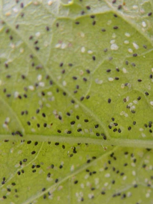 Diese Schlupfwespe (Encarsia formosa) ist die natürliche Gegenspielerin der weißen Fliege. Sie legt jeweils ein Ei in die Larve der weißen Fliege, die sich nach ca. 10 Tagen schwarz verfärbt.