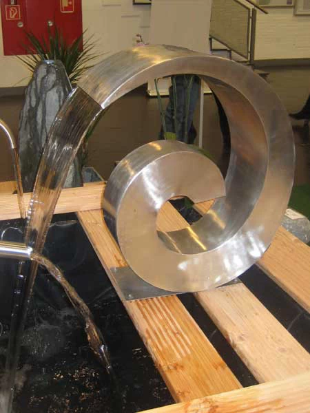 Der schneckenförmige Wasserfall „Bonaire“ eignet sich optimal zum Einsatz in der Flachwasserzone oder am Teichrand. Mit einem geeigneten Gestell, lässt sich das Wasserspiel auch im Teich aufstellen. Vier Bohrungen an der Unterseite ermöglichen die einfache Verschraubung auf festem Untergrund (z.B. Beton- oder Granit platte). Dank des chloridbeständigen und sehr hochwertigen Edelstahls ist er auch für den Einbau am Pool ideal geeignet.